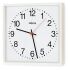 Innenuhr, quadratisch, einseitig, Metallgehäuse, weiß lackiert (RAL 9016), flaches stoßgeschütztes Acrylglas. Weißes Metallzifferblatt mit schwarzen arabischen Zahlen, Zifferblattdruck nach DIN 41091. Schwarze Balkenzeiger für Stunden- und Minutenanzeige, bzw. rot für Sekundenanzeige. Betriebsspannung über PoE (Power over Ethernet), entsprechende Hardware ist bauseits zu stellen.