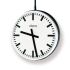 Innenuhr, rund, doppelseitig, Metallgehäuse weiß lackiert (RAL 9016), Deckenhalterung in Metalliclackierung Eisenglimmer (DB 703), gewölbte stoßgeschützte Plexigläser. Weiße Metallzifferblätter mit schwarzen DIN-Balkenziffern, Zifferblattdruck nach DIN 41091. Schwarze Balkenzeiger für Stunden- und Minutenanzeige. Betriebsspannung über PoE (Power over Ethernet), entsprechende Hardware ist bauseits zu stellen.