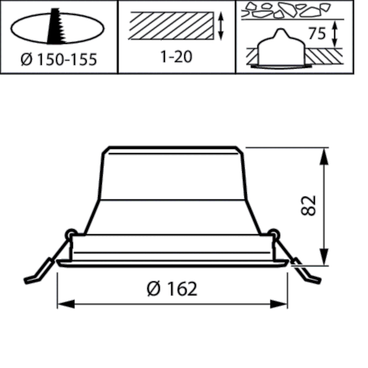 D150 mm, Polykarbonat, Weiß, Reinweiß (RAL9010), Netzteil (Ein/Aus), 1200 lm, 9.8 W, 122 lm/W, 3000 K, (0.435,0.405) SDCM?5, UGR19, Facettierter Reflektor, Polykarbonat