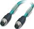 Bussystem-Kabel, Ethernet CAT5 (100 MBit/s), 4-polig, PUR halogenfrei, wasserblau RAL 5021, geschirmt, Stecker gerade M12, Kodierung: D, auf Stecker gerade M12, Kodierung: D, Kabellänge: 1 m