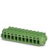 Leiterplattenstecker, Nennquerschnitt: 2,5 mm², Farbe: grün, Nennstrom: 12 A, Bemessungsspannung (III/2): 320 V, Kontaktart: Buchse (female), Anzahl der Potenziale: 10, Anzahl der Reihen: 1, Polzahl: 10, Anzahl der Anschlüsse: 10, Artikelfamilie: MSTBC 2,5/..-STZFD, Rastermaß: 5,08 mm, Anschlussart: Crimpanschluss, Montage: Direktmontage, Anschlussrichtung Leiter/Platine: 0 °, Rasthaken: - ohne Rasthaken, Stecksystem: COMBICON MSTB 2,5, Verriegelung: Schraubverriegelung, Befestigungsart: Schraubflansch, Verpackungsart: verpackt im Karton, Zugehörige Crimp-Buchsenkontakte mit Angaben zu Strom [A] und Leiterquerschnittsbereich [mm²] : 10A/MSTBC-MT 0,5-1,0 (3190564)