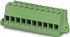 Direktsteckblock, Nennquerschnitt: 2,5 mm², Farbe: grün, Nennstrom: 12 A, Bemessungsspannung (III/2): 320 V, Kontaktoberfläche: Zinn, Kontaktart: Buchse, Anzahl der Potenziale: 14, Anzahl der Reihen: 1, Polzahl: 14, Anzahl der Anschlüsse: 14, Artikelfamilie: MSTBU 2,5/..-STD, Rastermaß: 5,08 mm, Anschlussart: Schraubanschluss mit Zughülse, Schraubenangriffsform: L Längsschlitz, Montage: Direktmontage, Anschlussrichtung Leiter/Platine: 0 °, Stecksystem: COMBICON MSTB 2,5, Verriegelung: ohne, Befestigungsart: ohne, Verpackungsart: verpackt im Karton