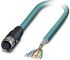 Netzwerkkabel, Ethernet CAT5 (1 GBit/s), 8-polig, PUR halogenfrei, wasserblau RAL 5021, geschirmt, freies Leitungsende, auf Buchse gerade M12, Kodierung: A / IP67, Kabellänge: 10 m