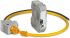 Set bestehend aus einem 1 A-Messumformer und einer Rogowski-Spule mit Signalleitung. Länge der Rogowski-Spule: 300 mm, Durchmesser: 95 mm. Länge der Signalleitung: 3 m. Die Rogowski-Spule misst AC-Strom von Stromschienen und Starkstromleitungen.