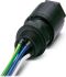 Wanddurchführung, Produktfamilie: QPD, Anschlussart: Einzeladern (angeschweißt)/ IDC-Anschluss, Polzahl: 4+PE, M20, Stift, 1 mm² ... 2,5 mm², 690 V, 20 A, PA, schwarz, mit QUICKON-Mutter, Kodierung: kodiert, Leitungsaußendurchmesser: 9 mm ... 16 mm, 2,5 mm², Adern glatt abgeschnitten, Leitungslänge: 0,5 m