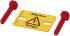 Warnschild, Platte, gelb/schwarz, beschriftet: Blitzpfeil und Warnhinweis in Englisch,: stecken, für Klemmenbreite: 5 mm, Durchmesser: 0 mm