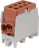 1 x braun / brown / brune, Hauptleitungs-Abzweigklemmen 1/4 M2, Minimodular anreihbar,Montage auf 35 mm Tragschiene gem. EN 60715, Farbcodierung entsprechend gültigen Aderfarben, Ui = 1000 V, VDE zertifiziert, Klemmblock verzinnt. Für Aluminiumleiter geeignet. Die geringe Baugröße führt dazu, dass weniger Raum in der Verteilung benötigt wird. Es lassen sich jetzt 35/25 mm2-Abgänge realisieren, wo konventionell nur 25/16 mm2 möglich waren. Die minimodulare Anreihbarkeit führt zu einer bisher nicht gekannten Variabilität. Je nach Bedarf lassen sich die farbig gekennzeichneten Klemmen kombinieren und mit einem Werkzeug wieder lösen.PV-Eignung: Leitungseinführungen mit Isolierkragen ermöglichen den Einsatz der Klemme bis zu 1000 V Nennspannung gemäß VDE 0613 / EN 60998. Die Klemmen sind auch ohne angeschlossenen Leiter allseitig fingersicher. Für die Verwendung mit feindrähtigen Leitern ist die Klemmentiefe den üblichen Längen von Aderendhülsen angepasst (HLAK 35 - 25 mm, HLAK 25 - 16 mm).Die neuen Klemmen sind VDE-approbiert gemäß VDE 0603-2 für Zählerplätze und Verteilungen.