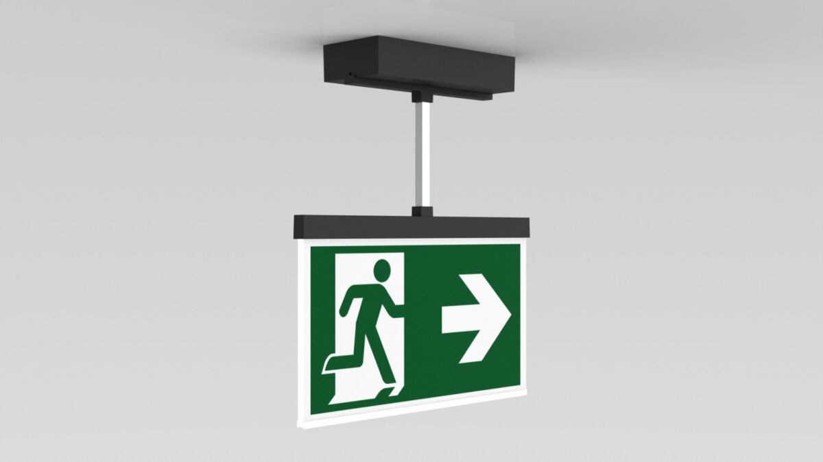 Moderne Zink-Druckguss Rettungszeichenleuchte mit Pendel zur Deckenaufbaumontage. Die Kennzeichnung der Rettungs- und Fluchtwege kann wahlweise ein- oder beidseitig erfolgen. Sie gehört zur Leuchtenfamile der A-Serie, die Lösungen für jede bereithält und für ihr einheitliches, geradliniges Design mit dem German Design Award ausgezeichnet wurde. Steuerung und Überwachung über zentrales 24-Volt-Low Power System. Planungssicherheit wird durch logisch vorgegebene aufgedruckte Piktogramme geboten. Die Piktogramme entsprechend DIN ISO 7010 (Pfeil rechts, links und unten) sind standardmäßig im Lieferumfang enthalten. Auf Anfrage kann die Beschriftung auch nach Kundenvorgabe erfolgen.