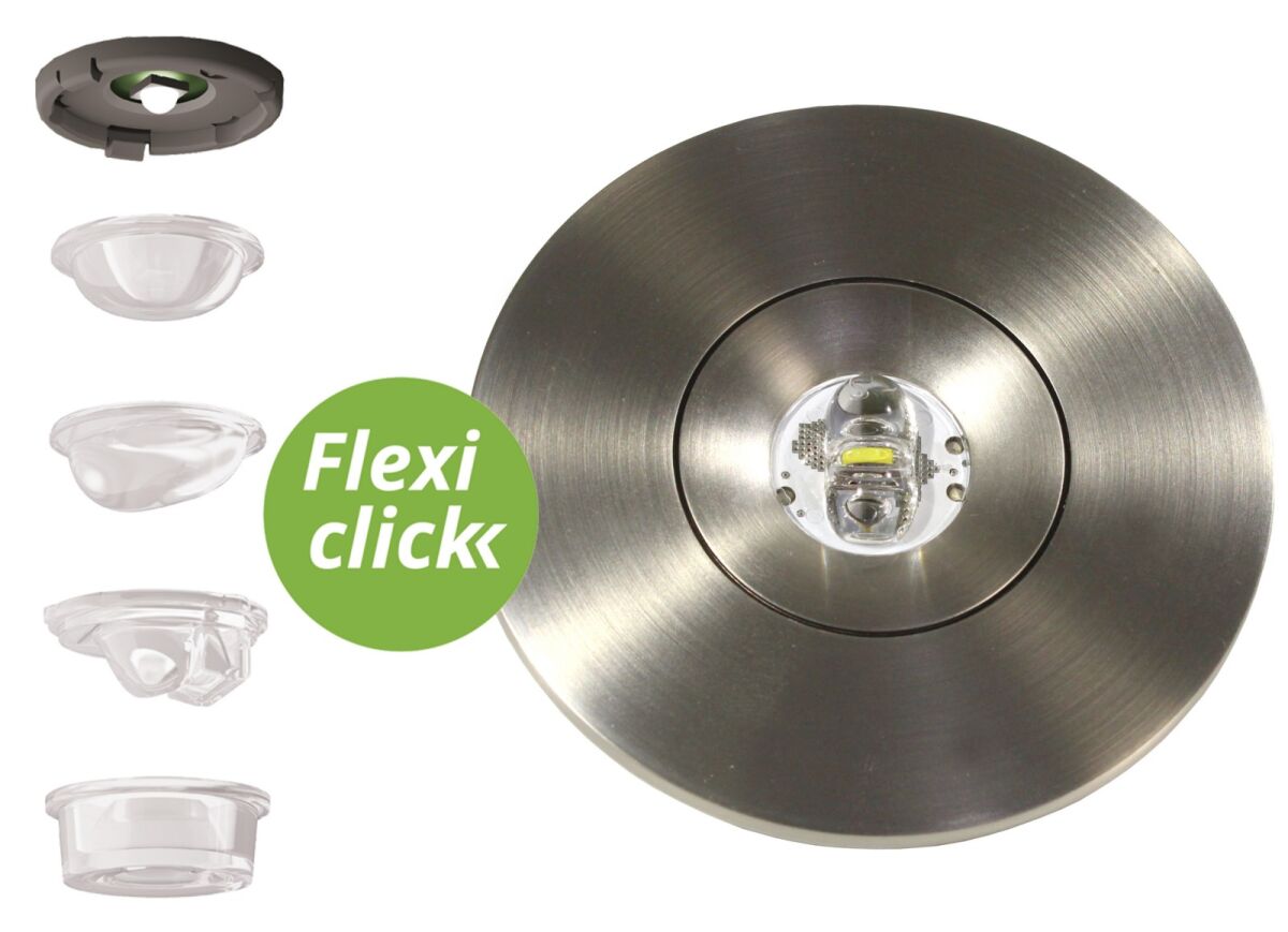LED-Sicherheitsleuchte zur Ausleuchtung der Flucht- und Rettungswege nach DIN EN 60598-1, DIN EN 60598-222 und DIN EN 1838. Die Deckeneinbauleuchte aus Zink-Aluminium passt sich unauffällig der Decke an. Sie kann neben herkömmlicher Deckeneinbaumontage ebenfalls in konventionelle, sowie Brandschutzdosen montiert werden. Durch die in der Linse eingebrachte Status LED wird die Harmonie des Gehäuses nicht unterbrochen. Der Einsatz von Streulinsen und leistungsstarker LED ERT Technik erreicht eine optimale Lichtverteilung und Ausleuchtung der Flucht- und Rettungswege. Der innovative integrierte Linsenträger mit Schnellmontagevorrichtung ermöglicht den flexiblen Einsatz unterschiedlicher Linsentypen je nach Anwendungsfall. Rund- und Flurlinse sind bei jeder Leuchte bereits im Lieferumfang enthalten.