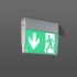 Leuchte zur Rettungswegkennzeichnung. Gehäuse Aluminium-Strangpressprofil pulverbeschichtet. Zum Einlegen für ein- und zweiseitige Verwendung sind 4 Rettungszeichenfolien und 1 weiße Folie beigelegt. Universal Befestigungssatz für Decken- und Wandanbau. Betriebsgerät integriert. Zum Anschluss an zentrale Sicherheitsstromversorgung geeignet.