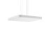 Dekorative quadratische LED Pendel-Flächenleuchte. Flacher nahtloser Rahmen Aluminium-Strangpressprofil pulverbeschichtet. Abdeckung Stahlblech pulverbeschichtet. Baldachin Aluminium pulverbeschichtet. Diffusor aus vergilbungsfreiem Kunststoff (PMMA) opal. LED Backlight-Technologie für eine homogene Ausleuchtung der gesamten lichtabgebenden Fläche. 4-Punkt Stahlseilabhängung stufenlos höhenverstellbar. Einfache Montage mit transparenter, kürzbarer Pendelleitung und Baldachin mit Magnetbefestigung. Betriebsgerät integriert. DALI dimmbar. Für Durchgangsverdrahtung geeignet.