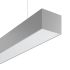 Lineare Pendelleuchte für ästhetisch anspruchsvolle Beleuchtung. Gehäuse Aluminium-Strangpressprofil pulverbeschichtet. Endkappen Aluminium pulverbeschichtet, ohne sichtbare Schrauben. Baldachin Aluminium pulverbeschichtet. Diffusor aus vergilbungsfreiem Kunststoff (PMMA) mikroprismatisch. Speziell aufeinander abgestimmtes 2-Komponenten-Optiksystem für blendfreies Licht am Arbeitsplatz (bildschirmgerecht gemäß DIN EN 12464-1). Lichtaustritt direkt. Geeignet für Pendel. 2-Punkt Stahlseilabhängung frei positionierbar und stufenlos höhenverstellbar oder gewünschte Sonderlängen auf Anfrage. Austauschbare und herausnehmbare LED-Einheit mit integriertem Betriebsgerät. Für Durchgangsverdrahtung geeignet.