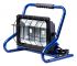 mobiler Strahler mit LED Chip, schmale Bauform mit zwei Schutzkontaktsteckdosen mit Klappdeckel, blaues Gestell und schwarzes Schutzgitter, 3 m Gummischlauchleitung H07RN-F 3G1,5 mit Schutzkontaktstecker