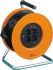 Großer, kabelschonender Wickelkern mit knickfreier Kabeleinführung und wirksamer Zugentlastung, mit Feststellbremse, Tragegriff aus verzinktem Stahlrohr, ohne Schweißnaht