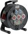 Spezialgummi-Kabeltrommel mit dwd-Steckdosen 3xC516, 2xSchutzkontaktsteckdose, FI-Schalter, SI- Automaten.