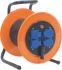 Kabeltrommel mit 4 Schutzkontakt-Maschinensteckdosen 2-polig + E, 16A, 250V, mit selbst- schliessenden Klappdeckeln.