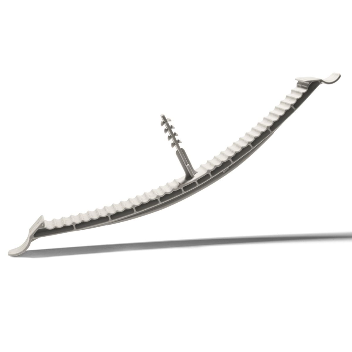 Für die trassenförmige Verlegung von Mantelleitungen, die Verlegung von bis zu 13 Leitungen (3 x 1,5 mm2) erfolgt mit dem Kabelbügel KB 13 und von bis zu 26 Leitungen (3 x 1,5 mm2) mit dem Kabelbügel KB 26, perfektes und rasches Verlegen mehrerer Leitungen direkt an der Decke, Einstecken des KB mit geringem Kraftaufwand, anschließend leichtes Einlegen der Kabel. Durch die Eigenspannkraft des KB ist die dauerhafte Fixierung der Kabel - auch bei hohen Temperaturschwankungen - gewährleistet, einzigartige Anreihmöglichkeit für EC Euro-Clip - zur nachträglichen Befestigung eines Rohres, für die getrennte Verlegung von verschiedenen Leitungen - ohne zu Bohren, hellgrau, halogenfrei, PP, UV-stabilisiert, Temperaturbereich: -10 Grad C bis +85 Grad C, silikonfrei, Spannbereich Kabel 100 mm