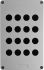 Leeres Steuergehäuse aus Kunststoff, 16 Öffnungen in 4 Spalten. Es ist Teil der Baureihe Harmony XAP, XB2 SL Metallgehäuse, für Harmony XB4.