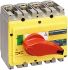 Compact INS250-200 ist ein 4-poliger, nicht selbsttätiger Lasttrennschalter 200A mit rotem Drehgriff und gelber Front.