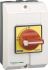 Leergehäuse für NOT-AUS-/Hauptschalter. Gehäuse, leer. Frontschild 60 x 60 mm, Schalterblock für V3. Gehäuse in Schutzart IP 65. Roter Griff, abschließbar mit 3 Vorhängeschlössern DM 4 mm bis DM 8 mm (Lieferung Ohne Vorhängeschlösser). Schalterstellung O I, Frontschild gelb.