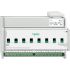 Schneider Electric KNX. Zum unabhängigen Schalten von 8 Verbrauchern über Schließerkontakte. Der Aktor verfügt über eine integrierte Stromerkennung, die den Lastrom je Kanal misst. Alle 230 V-Schaltausgänge lassen sich mit Handschaltern manuell betätigen. Mit integriertem Busankoppler. Eine grüne LED zeigt nach dem Laden der Applikation die Betriebsbereitschaft an. Der Lastanschluss erfolgt über Schraubklemmen. Für die Montage auf Hutschienen TH35 nach EN 60715. Der Busanschluss erfolgt über eine Busanschlussklemme. Nennspannung: AC 230 V, 50-60 Hz. DC 12-24 V +/-10%, 0,1-16 A. Je Schaltkontakt: Schaltstrom: 16 A, cos Phi 0,6, Erfassungsgenauigkeit: +/- 8% des aktuellen Stromwertes (sinus) und +/- 100 mA. Frequenz: 50/60 Hz bei Wechselspannung. Darstellung: 100 mA. Gerätebreite:8 TE entspricht ca 144 mm, Lieferumfang: Mit Busanschlussklemme und Leitungsabdeckung.