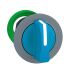 Wahlschalter aus Kunststoff als Frontelement und 30mm Einbaumaß, Baureihe Harmony XB5F für flachen Einbau. Farbe des Wahlschalters ist blau. Der Betätiger hat 3 Stellungen. Die Farbe des Außenrings ist grau. Die modularen Harmony Baureihen mit 30mm Einbaumaß kombinieren einfache Installation, Effizienz, modernes Design, Flexibilität mit höchster Robustheit. IP-Schutzklassen bis IP69K und Umgebungstemperaturen von -40°C bis +70°C. Produktstandards gem. EN/IEC 60947-5-1, EN/IEC 60947-5-4, CSA C22.2 No 14, UL 508, EN/IEC 60947-1, JIS C 4520. Zertifizierungen nach DNV, GL, UL gelistet, RINA, BV, CSA, LROS (Lloyds register of shipping). Produktstandards gem. EN/IEC 60947-5-1, EN/IEC 60947-5-4, CSA C22.2 No 14, UL 508, EN/IEC 60947-1, JIS C 4520.