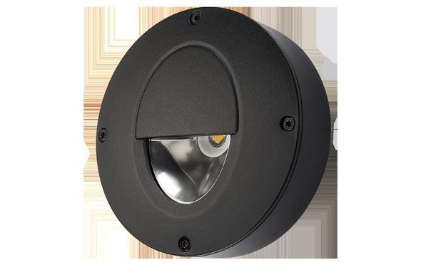 Attraktive LED-Wandleuchte. Für Außen- und Innenbereiche. Integrierter, effizienter LED-Chip, dimmbar über Phasenabschnittsdimmer. Aus pulverbeschichtetem Druckguss-Aluminium , Glasabschirmung. 35 mm Gesamthöhe.