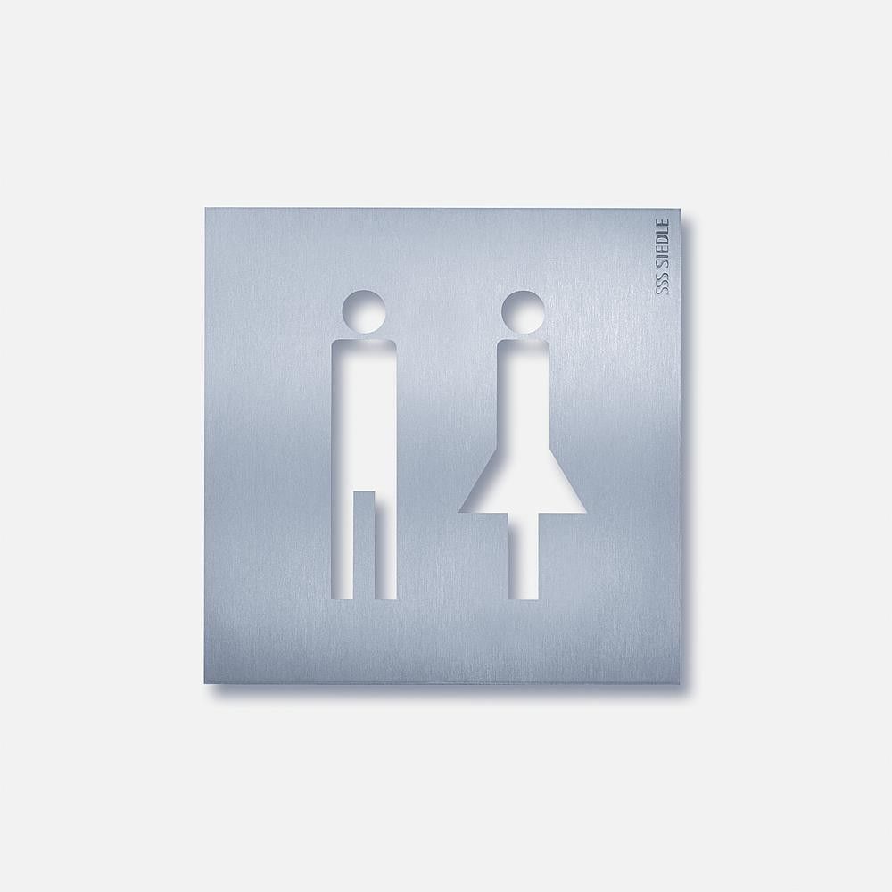 Orientierungsschild mit Piktogramm Toilette aus gebürstetem Edelstahl.