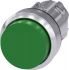 Drucktaster, 22 mm, rund, Metall, hochglanz, grün, Druckknopf, hoch tastend Drucktaster SIRIUS ACT zur Schaltung und Steuerung elektrischer Verbraucher. Unter dem Markennamen SIRIUS ACT bietet Siemens ein einzigartiges Portfolio an Befehls- und Meldegeräten mit weltweiten Produkt-Zulassungen in drei modernen Designreihen aus robustem Echtmetall und hochwertigem Kunststoff.Das innovative Aufschnappkonzept vereinfacht die Montage so weit, dass dafür nur eine Hand und kein Spezialwerkzeug erforderlich ist. Als Montagebohrungen genügen nutfreie Löcher, da bereits ein 100%iger Verdrehschutz integriert ist.Dank der durchgängig hohen Schutzart sind die robusten Geräte industrietauglich und für den Außeneinsatz geeignet. Sogar die Reinigung mit Hochdruckstrahl ist möglich. Weder Staub, Öle noch aggressive Laugen können den zuverlässigen Betrieb stören.Neben der Standardverdrahtung können die meisten Geräte auch über PROFINET, AS-Interface oder IO-Link an die Steuerung angebunden werden. Damit reduzieren Sie Ihren Verdrahtungsaufwand, minimieren Fehlerquellen und gewinnen mehr Flexibilität.Komfortabel unterstützt der grafische Online-Konfigurator bei Auswahl und Bestellung von Einzelgeräten, Gehäusen und Beschriftungen. Umfangreiche Dokumentation (z.B. Handbuch, 3D-Daten, Anschlussdiagramm) ist verfügbar. Lieferbare Ausführungen: mehrere Farben, beleuchtet/unbeleuchtet, mit/ohne Beschriftung, verrastende/tastende Betätigung, verschiedene Druckknopf- und Frontringhöhen. Hinweis: Einzelgerät, Halter und Module bitte extra bestellen. SIRIUS ACT - Performance in Action beim Befehlen und Melden. Einfach montiert, einfach stark, einfach perfekt.