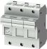 SENTRON, Zylindersicherungshalter, 14x51 mm, 3-polig, In: 50 A, Un AC: 690 V SENTRON Zylindersicherungssystem für den selektiven Anlagenschutz. Siemens Zylindersicherungseinsätze und -sicherungshalter sind für den Einsatz in industriellen Anlagen geeignet. Sie sind in Europa Standard und als Sicherungstrennschalter geprüft und zugelassen aber nicht zum Schalten unter Last vorgesehen. Für das Schalten unter Last bietet Siemens ein umfangreiches Portfolio z.B. 3KF an. Die Siemens Zylindersicherungssysteme zeichnen sich vor allem aus durch: 1. Erfüllung der Normen IEC 60269-1, -2 und -3. 2. Erfüllung der Norm UL 512. 3. Schnellen Sicherungswechsel durch Platz für Ersatzsicherungen im Einschub. 4. Schnelles Erkennen der ausgelösten Sicherung durch blinkende LED im Falle der Auslösung.