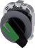 Knebelschalter, beleuchtbar, 30 mm, rund, Metall, matt, grün, Knebel, lang, Frontring für flachen Einbau, 2 Schaltstellungen O