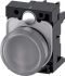 Leuchtmelder, 22 mm, rund, Kunststoff, klar, Linse, glatt, mit Halter, LED-Modul, mit integrierter LED AC 230 V, Schraubanschluss Leuchtmelder SIRIUS ACT zur Signalisierung von Schaltzuständen oder Störungen in Anlagen mit brillianter Leuchtkraft dank energieeffizienter LED-Technologie. Unter dem Markennamen SIRIUS ACT bietet Siemens ein einzigartiges Portfolio an Befehls- und Meldegeräten mit weltweiten Produkt-Zulassungen in drei modernen Designreihen aus robustem Echtmetall und hochwertigem Kunststoff.Das innovative Aufschnappkonzept vereinfacht die Montage so weit, dass dafür nur eine Hand und kein Spezialwerkzeug erforderlich ist. Als Montagebohrungen genügen nutfreie Löcher, da bereits ein 100%iger Verdrehschutz integriert ist.Dank der durchgängig hohen Schutzart sind die robusten Geräte industrietauglich und für den Außeneinsatz geeignet. Sogar die Reinigung mit Hochdruckstrahl ist möglich. Weder Staub, Öle noch aggressive Laugen können den zuverlässigen Betrieb stören.Neben der Standardverdrahtung können die meisten Geräte auch über PROFINET, AS-Interface oder IO-Link an die Steuerung angebunden werden. Damit reduzieren Sie Ihren Verdrahtungsaufwand, minimieren Fehlerquellen und gewinnen mehr Flexibilität.Komfortabel unterstützt der grafische Online-Konfigurator bei Auswahl und Bestellung von Einzelgeräten, Gehäusen und Beschriftungen. Umfangreiche Dokumentation (z.B. Handbuch, 3D-Daten, Anschlussdiagramm) ist verfügbar. Lieferbare Ausführungen: mehrere Farben, verschiedene Spannungsvarianten. Hinweis: Komplettgerät, Lieferung inklusive Halter und Module. SIRIUS ACT - Performance in Action beim Befehlen und Melden. Einfach montiert, einfach stark, einfach perfekt.