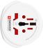 Skross World Adapter PRO-World, weiß, Verkaufskarton, geeignet für alle geerdeten und ungeerdeten Geräte (2- und 3-polig), Universal-Reiseadapter zum Netzanschluss von elektrischen Geräten in über 220 Ländern weltweit, 6 Netzanschluss-Stecker für UK, USA/Japan, Australien/China, Italien, Brasilien und Schweiz lassen sich wechselweise per Schieberegler ausklappen, integr. Schutzkontaktbuchse kann mit dem mitgelieferten Steckdosenaufsatz passend für viele internationale Gerätestecker erweitert werden, Aufsatz für den Adapter kann separat an eine Schutzkontaktsteckdose (Typ F) angeschlossen werden. Steckdosenadapter verfügt über eine austauschbare Sicherung, Typ T 7 A, Reisestecker wandelt die Spannung aus dem lokalen Stromnetz nicht um und darf nur an Geräte mit geeigneter Eingangsspannung angeschlossen werden