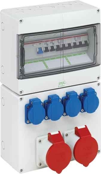 Steckdosenkombination, mit Schutzart IP44, anschlussfertig, nach EN 61439-3, hohe mechanische Belastbarkeit, temperaturunempfindlich, kombinierbar