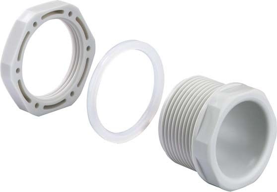 Kombiset zum Verbinden von Gehäusen mit metrischen Einführungen, Polystyrol, grau, komplett mit Gegenmutter und Zwischenwanddichtung, Gewindelänge 22mm