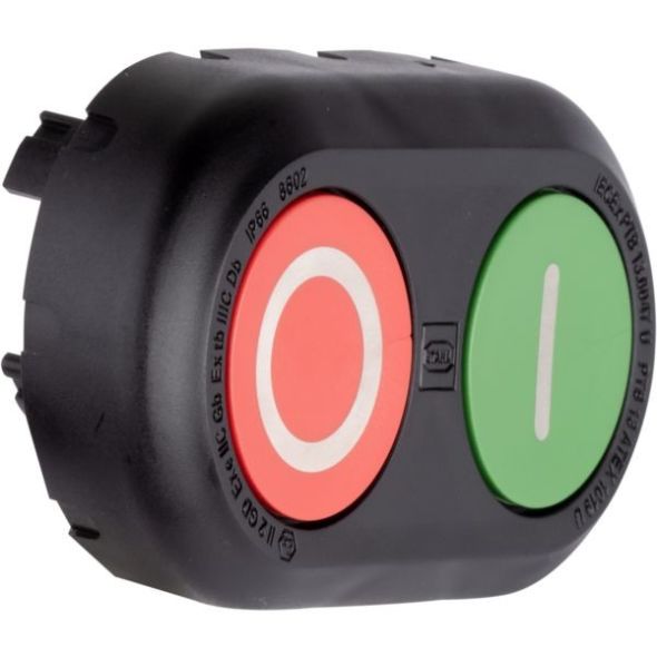 Doppeldrucktaster -, explosionsgeschützt, Typ: 8602C3-023-S, Gehäusematerial: Polyamid, Dichtung: Silikon, Befestigung: Gewindeausführung, Einsatzbereich (Zonen): 1 , 2 , 21 , 22, Gasexplosionsschutz: II 2 G Ex eb IIC Gb, Staubexplosionsschutz: II 2 D Ex tb IIIC Db, Umgebungstemperatur min.: -60 °C, Umgebungstemperatur max.: +70 °C, Schutzart (IP): IP66, Verpackt: Ja, Verpackungseinheit: 1 ST, Für weitere Info siehe: r-stahl.com Webcode 8602A