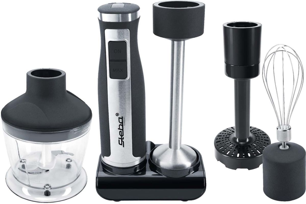 Das Stabmixer-Set MX 40 überzeugt mit umfangreichem Zubehör (7 Aufsätze!) und einem langen Mixstab aus Edelstahl, um mühelos in tiefen Töpfen zu arbeiten. Die Besonderheit liegt natürlich im Design! Mit seinem edlen Gehäuse in gummierten Anthrazit ist der MX 40 auf jeden Fall ein Hingucker.