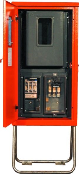 Gehäuse aus verzinktem Stahlblech mit schwenkbaren Traggriffen, verschließbar mittels Vorhängeschloss (bauseits), Lackierung RAL 2004 orange, Fußgestell feuerverzinkt mit Befestigungslaschen für Erdnägel. Lieferung erfolgt einschl. Sicherungszubehör und Fußgestell