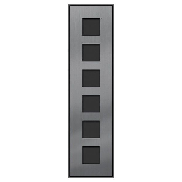 Produktmerkmale, Frontplatte+Aufnahmefach und Inputzkasten, Anzahl integrierbarer Module: 6, Modulintegration: Verschraubung auf Gewindebolzen, Öffnungsprinzip: Schiebemechanismus in oberer Fuge, funktional erweiterbar: mit Außenstationsmodulen der Serie AMI, Montageform: Inputzmontage/Unterputzmontage, Material / Farbe Frontplatte: Edelstahl geschliffen und gebürstet, Material / Farbe UP-Kasten: Edelstahl geschliffen und gebürstet, technische Daten, Materialstärke Frontplatte: 3 mm, Frontplattenausschnitt HxB mm: 82x82, Frontplatte HxBxT mm: 800x200x3, UP-Kasten HxBxT mm: 815x215x50, zulässige Umgebungstemperatur: -20 bis +50 Grad C, optionales Zubehör, Funktionsmodule der Serie AMI