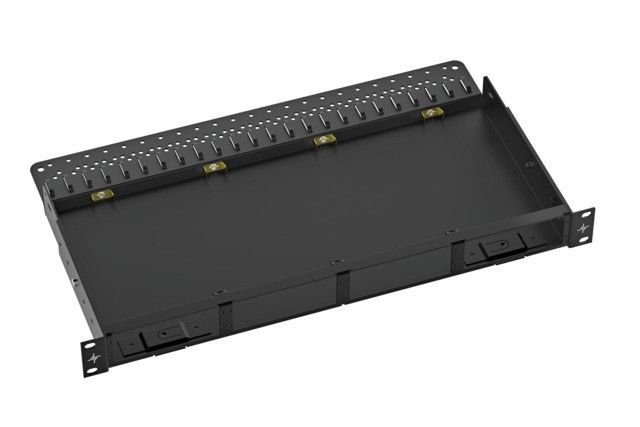 , mit 4 unbelegten, horizontalen Slots zur Aufnahme von max. 4 HD³-ES Modulen in Bauhöhe 1,0 HE, oder max. 8 HD³-ES Modulen in Bauhöhe 0,5 HE, oder einer geeigneten Kombination hieraus.