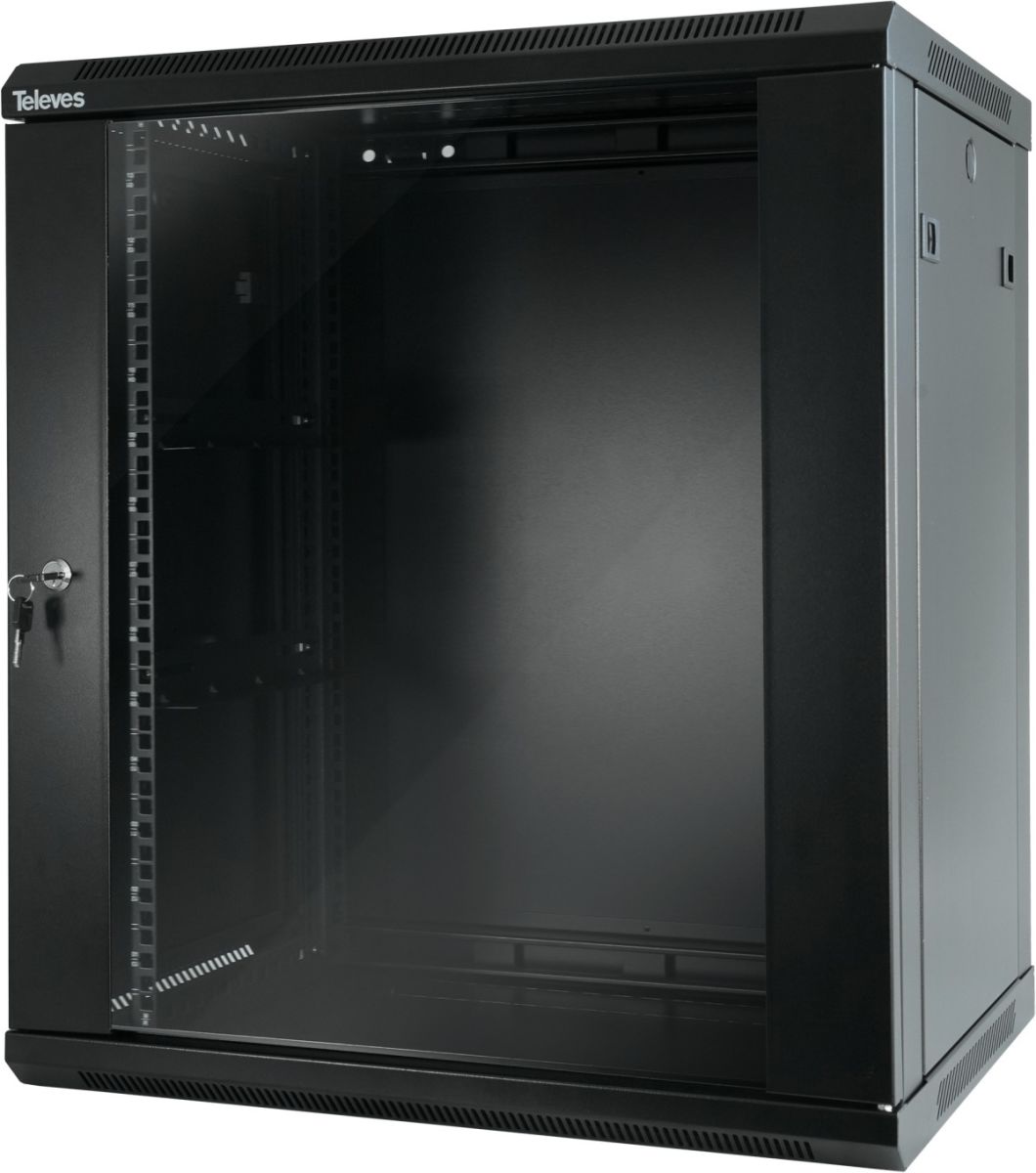 Der 15+2HE Rackschrank ist zur Aufnahme von aktiver und passiver Ausrüstung vorgesehen, die von außen sichtbar und durch eine sichere abschließbare Stahlkonstruktion geschützt ist. Der Schrank ist kompatibel mit Lichtwellenleiter-, Datenkabel- oder Koaxialkabel-Installationen und ermöglicht so die Gruppierung verschiedener Technologien in einem einzigen Schrank. Das Gesamt-Aufnahmevermögen ist 17HE, und zwar 15HE und zusätzliche 2HE bei Nutzung der oberen und unteren Enden. Ausgelegt für die Wand- oder Bodenmontage.