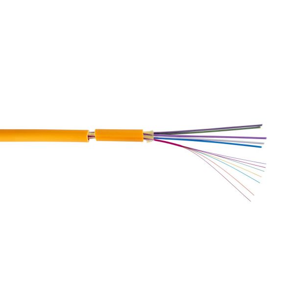 48-Faser-Kabel mit UV-beständigem LSFH-Mantel für die Innenmontage und die Außenmontage. Aufgeteilt in 6 Mikro-Module von jeweils 8 Fasern, jede mit eigenem LSFH-Mantel und unterschiedlicher Farbe. Dies ermöglicht eine bessere Ordnung und vereinfacht die Identifizierung.