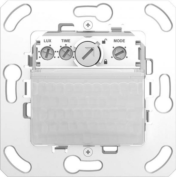 Passiv-Infrarot-Präsenzmelder für UP-Wandmontage, 1 Kanal Licht und 1 Kanal Präsenz, ohne Abdeckrahmen, Abdeckrahmen zur Integration in gängige Schalterprogramme als Zubehör erhältlich, halbrunder Erfassungsbereich 170° bis zu 14x17 m, Automatische präsenz- und helligkeitsabhängige Steuerung für Beleuchtung, Akustikfunktion und Orientierungslicht, automatischer Abgleich der Helligkeitsmessung, einstellbare Empfindlichkeit, externer Taster anschließbar, Kurzzeit-Präsenz, fernbedienbar, Betrieb als Voll- oder Halbautomat, umschaltbar, Helligkeitsschaltwert einstellbar, Teach-in Funktion, Treppenlicht- und Impulsfunktion, Einschaltverzögerung und Nachlaufzeit einstellbar, Einschränkung des Erfassungsbereichs möglich, Integrierter Taster (blockierbar), Erweiterung des Erfassungsbereiches durch Master/Slave-Schaltung
