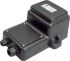Einphasen-Trafo in Gießharzvollguß für Schutzkleinspannung (SELV) nach VDE 0570 Teil 2-6 / DIN EN 61558- 2-6 / IEC 61558- 2-6, primär mit Kabelverschraubung und auswechselbarer Glasrohrsicherung, sekundär mit Kabelverschraubung, in Kunststoffgehäuse vergossen, Schutzklasse II, Schutzart IP54, ortsfest, Isolationsklasse ta40E, Frequenz 50/60 Hz