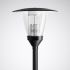 Dekorative Pilzleuchte für Mastaufsatzmontage. Mit intelligentem Label zum schnellen Aufrufen von Leuchten-Informationen mittels QR-Code. Mit Leistungsreduzierung über Steuerphase. Das Abschalten einer Steuerphase bewirkt eine Einstellung des Leuchtenlichtstroms auf 50 %. Für Mastzopf Ø 76 mm. Mittels separat zu bestellender Reduzierstücke auch zur Montage an Masten mit Zopf Ø 60 mm geeignet. Passender Mast auf Anfrage. Optisches System aus hochglänzendem, eloxiertem Aluminium. Mit asymmetrisch breit strahlender Lichtstärkeverteilung. Leuchtenlichtstrom und Lichtfarbe fest eingestellt, mit Lichtstromkonstanthaltung am Ende der Lebensdauer (CLO). Bemessungslichtstrom 1800 lm, Bemessungsleistung 24 W, maximale Leuchten-Lichtausbeute 75 lm/W. Lichtfarbe warmweiß, ähnlichste Farbtemperatur (CCT) 3000 K, allgemeiner Farbwiedergabeindex (CRI) Ra > 80. Farborttoleranz (initial MacAdam) = 3 SDCM. Die Lichtquelle ist entsprechend der Ökodesign-Anforderungen (VO (EU) 2019/2020) austauschbar. Leuchtenkörper aus Aluminium-Druckguss, Leuchtendach aus korrosionsbeständigem Aluminium, hochwetterfest pulverbeschichtet. Farbe Leuchtenkörper und Leuchtendach außen tiefschwarz, ähnlich RAL 9005. Leuchtendach innen weiß pulverbeschichtet. Seewetter geeignete Beschichtung auf Anfrage. Abdeckung aus hochschlagzähem PMMA in Pilzform, klar. Leuchtenabdeckung in selbstarretierende Service-Position hochschiebbar. Mast auf Anfrage erhältlich. Schutzklasse (EN 61140): II, Schutzart (DIN EN 60529): IP23, Schutzart Lampenraum: IP65. Stoßfestigkeitsgrad nach IEC 62262: IK04. Zulässige Umgebungstemperatur (ta): 25 °C bis . Windangriffsfläche fw 0,340 m2. Gewicht: 7,2 kg. Mit elektronischem Betriebsgerät, schaltbar. Das Betriebsgerät ist entsprechend der Ökodesign-Anforderungen (VO (EU) 2019/2020) austauschbar. Elektroblock mit allen elektrischen Komponenten werkzeuglos austauschbar. Stoßspannungsfestigkeit Differential Mode / Common Mode: 6 kV / 10 kV. Das Produkt erfüllt die grundlegenden Anforderungen der anwendbaren EU-Richtlinien und des Produktsicherheitsgesetzes und trägt die CE-Kennzeichnung. Zusätzlich ist die Leuchte durch eine unabhängige Prüfstelle ENEC-zertifiziert. Leuchte 10 Jahre, Ersatzteile (LED-Modul, Betriebsgerät, optisches System) 15 Jahre nach Rechnungsdatum unter Vorbehalt vertretbarer Änderungen, die dem Fortschritt dienen, verfügbar.