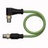 Leitung für Industrial Ethernet, Verbindungsleitung, Leitungslänge 10 m, Stecker gewinkelt M12, 4-polig, M12-Stecker, gerade, Ethernet-Leitung: 4-polig, AWG 22, CAT 5E, Mantelmaterial: PUR, Mantelfarbe: grün, Schirm: Aluminiumfolie überlappend, Kupferdraht verzinnt, Manteldurchmesser: 6.5 mm, schleppkettentauglich, ölbeständig nach IEC 60811-2-1 und UL13, halogenfrei nach IEC 60754, flammwidrig nach IEC 60332-1-2 und UL FT2, RoHS-konform, PNO-konform, Leitungslänge: 10 Meter