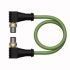 Leitung für Industrial Ethernet, Verbindungsleitung, Leitungslänge 2 m, Stecker gewinkelt M12, 4-polig, M12-Stecker, gewinkelt, D-codiert, Ethernet-Leitung: 4-polig, AWG 22, CAT 5E, Mantelmaterial: PUR, Mantelfarbe: grün, Schirm: Aluminiumfolie überlappend, Kupferdraht verzinnt, Manteldurchmesser: 6.5 mm, schleppkettentauglich, ölbeständig nach IEC 60811-2-1 und UL13, halogenfrei nach IEC 60754, flammwidrig nach IEC 60332-1-2 und UL FT2, RoHS-konform, PNO-konform, Leitungslänge: 2.0 Meter