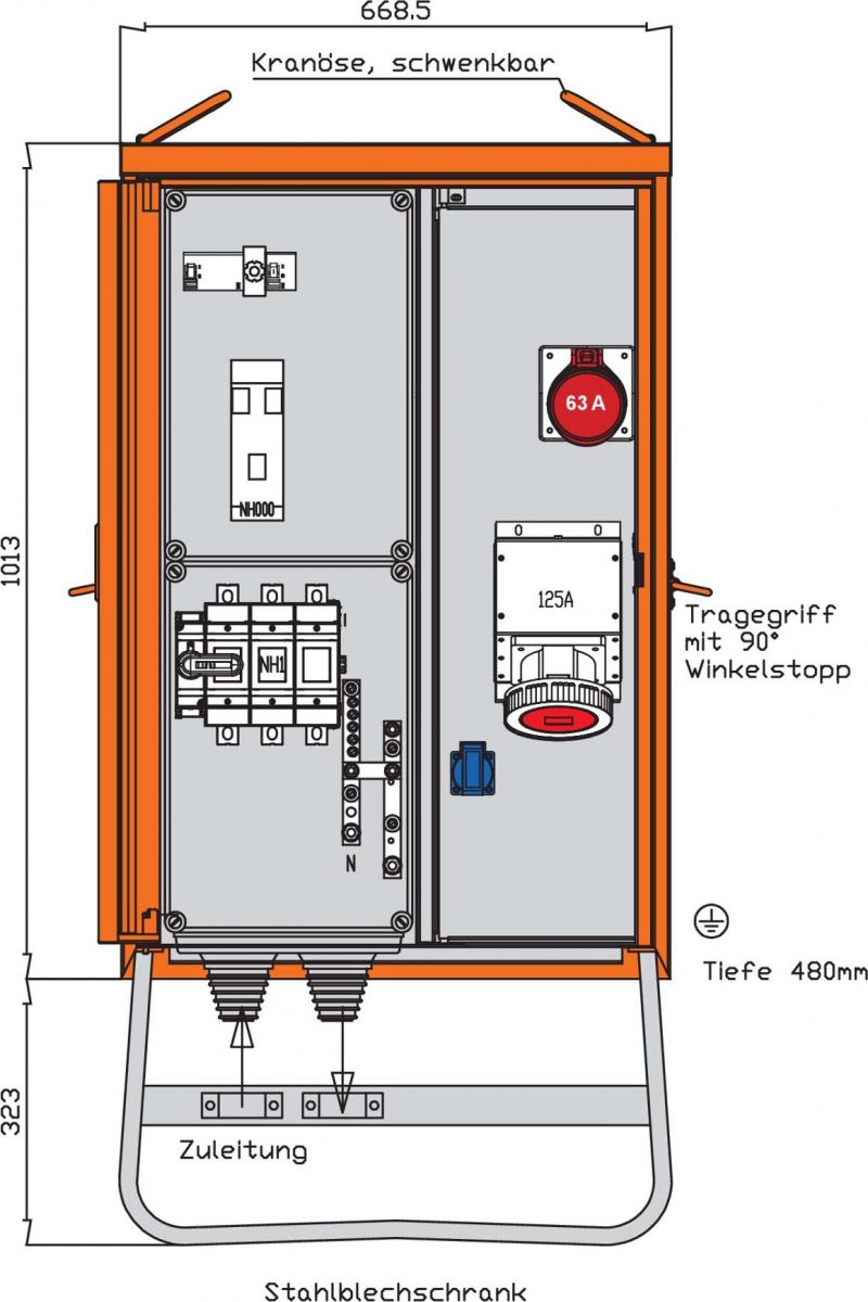 mit NH000-Sicherungslasttrennschalter 63A