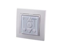 -TFT-Display mit Beleuchtung ist vorhanden. Die Inbetriebnahme und Einstellungen erfolgt am Bediengerät oder mittels WAREMA climatronic® studio Software. Zudem ist eine freie Vergabe von Kanal-, Gruppen- und Szenennamen möglich. Besitzt eine USB-Schnittstelle zur Verbindung mit einem PC. Die vorgenommenen Einstellungen können auf SD-Karte gespeichert werden bzw. mittels PC veränderte Einstellungen zurückübertragen werden. Ist in den Sprachen deutsch, englisch, französisch, italienisch, spanisch, norwegisch, schwedisch, japanisch und chinesisch verfügbar. Des Weiteren ist optional auch eine Bedienung per Funk über EWFS Hand- oder Wandsender erhältlich. Mithilfe des sogenannten KNX Gateways wird dieses Bediengerät zur WAREMA climatronic® KNX Zentrale. Hinweis: Es ist ein externes Netzteil erforderlich (je nach Systemgröße sind ein oder mehr Netzteile erforderlich). Dies ist die Ausführung in schwarz/silber.