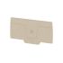 Abschlussplatte für den Berührungsschutz an spannungsführenden Teilen von Reihenklemmen. Die Abschlussplatte wird auch zur optisch erkennbaren Trennung von Stromkreisen eingesetzt, um Verdrahtungsfehler zu vermeiden.